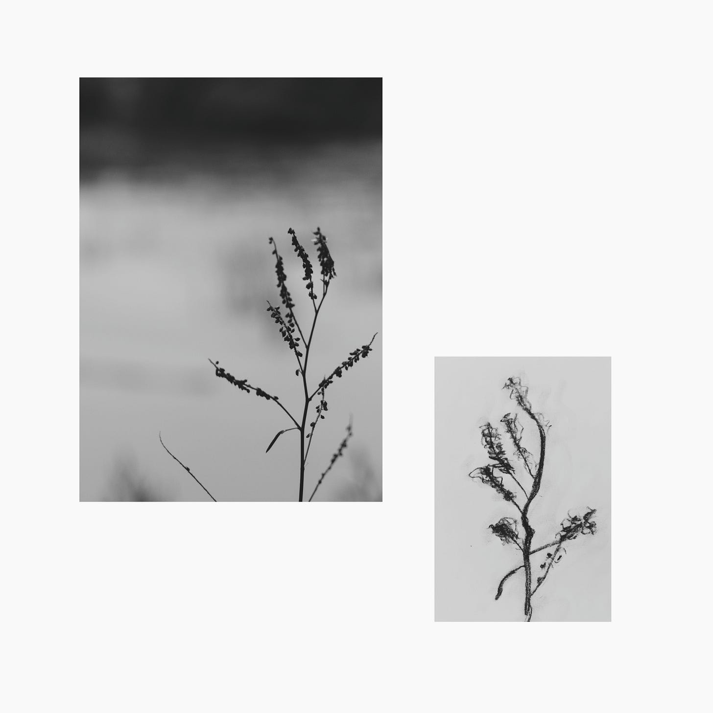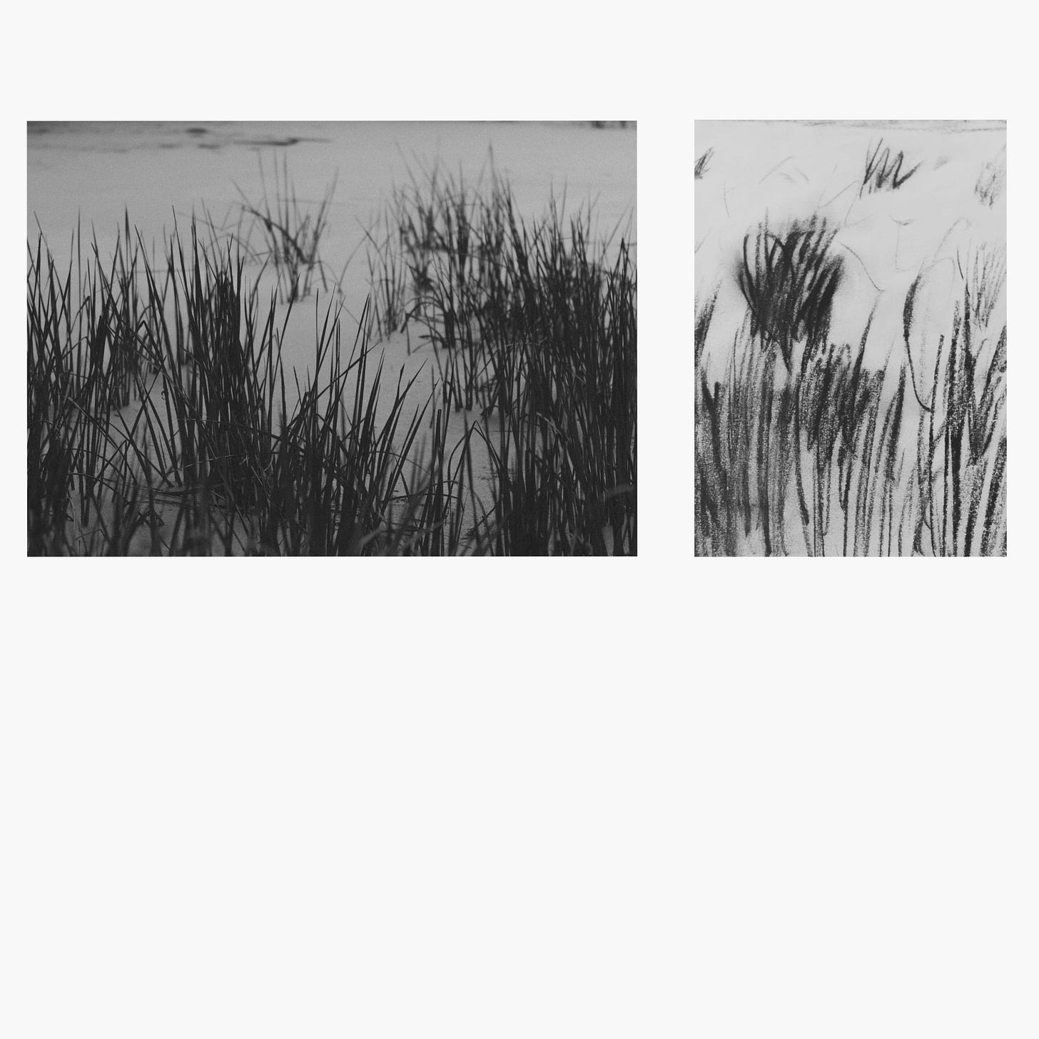 So, as an encouragement to you, I am sharing my rather rudimentary attempts at some simple charcoal abstract drawings/scribbles inspired by nature paired with my simple photographs. I call them “Charcoal Diptychs”.